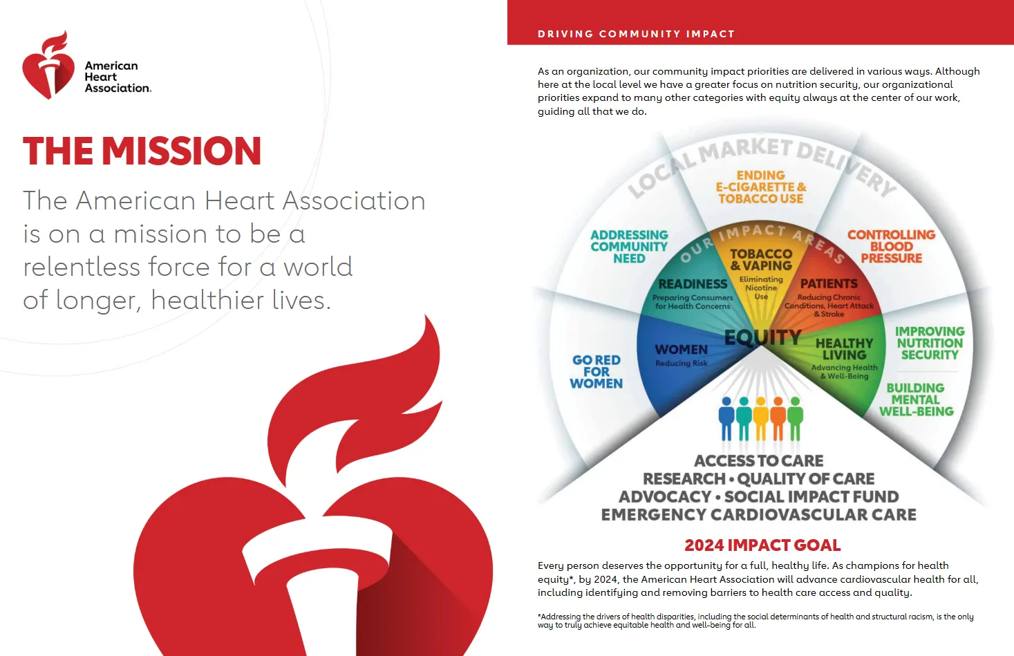 The American Heart Association of Greater Charlotte does an excellent job of tying each of its service areas to a direct impact metric, and then tying all of them to a single, overarching impact goal: